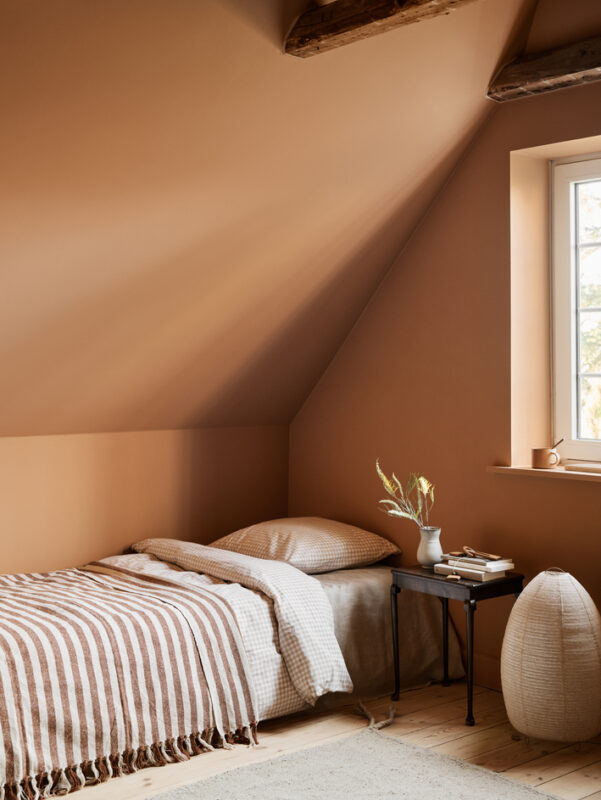 Ett tips är att använda enfärgade tapeter istället för att måla, vilket gör att atmosfären i rummet upplevs som mjukare och lugnare. En fördel med att köpa tapeter är att det också ofta är enklare att sätta upp och få ett bra resultat med.