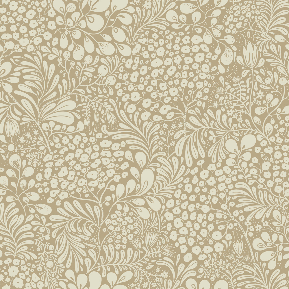I kollektionen Saltviken har designern Lina Schnaufer jobbat med minnen från hennes gammelmormors föräldrahem i Kolmyrarna på västkusten. Huset är byggt någon gång under 1800-talet och var från början en enkel boning med tillhörande uthus och liten åker. Senare blev det fritidshus för de olika släktgrenarna under somrarna och loven. Huset kallas Saltvik efter viken som huset är beläget vid. Kollektionen Saltviken har tagit inspiration från Linas vistelser som barn och naturen runtomkring. Somrar som spenderades med hennes kusiner, cyklandes på smala barriga stigar ner till havet, plockandes blåbär och ätandes sillunch i bersån. En äkta sommardröm. Tapet i nougat med ljust slingrande blommönster.
