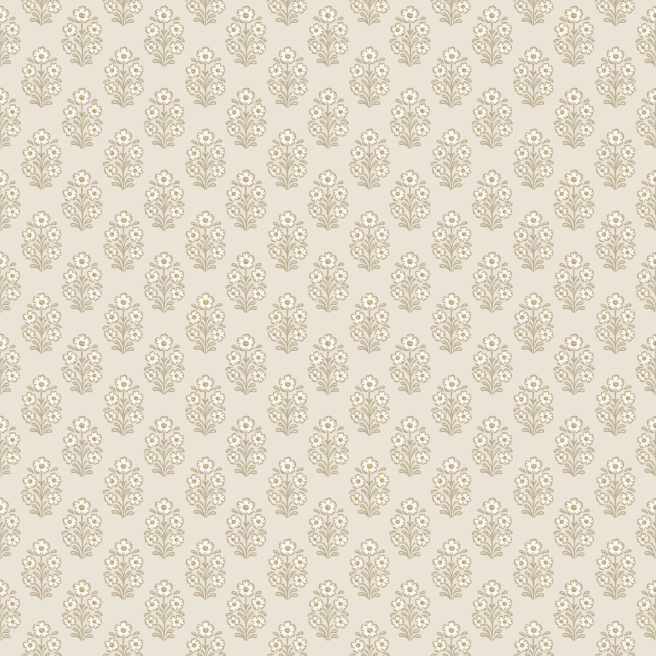 Sibylla är en söt, småblommig tapet med ett nyritat mönster inspirerat av klassiska blocktryck. De små blomsamlingarna ger ett mjukt, ombonat intryck på väggen och på håll skapar den rytmiska mönsterbilden ett vilsamt lugn. Här går den blommiga tapeten Sibylla i en mild, beige färgskala med detaljer i brunt, gulbrunt och vitt mot ljusbeige bakgrund.