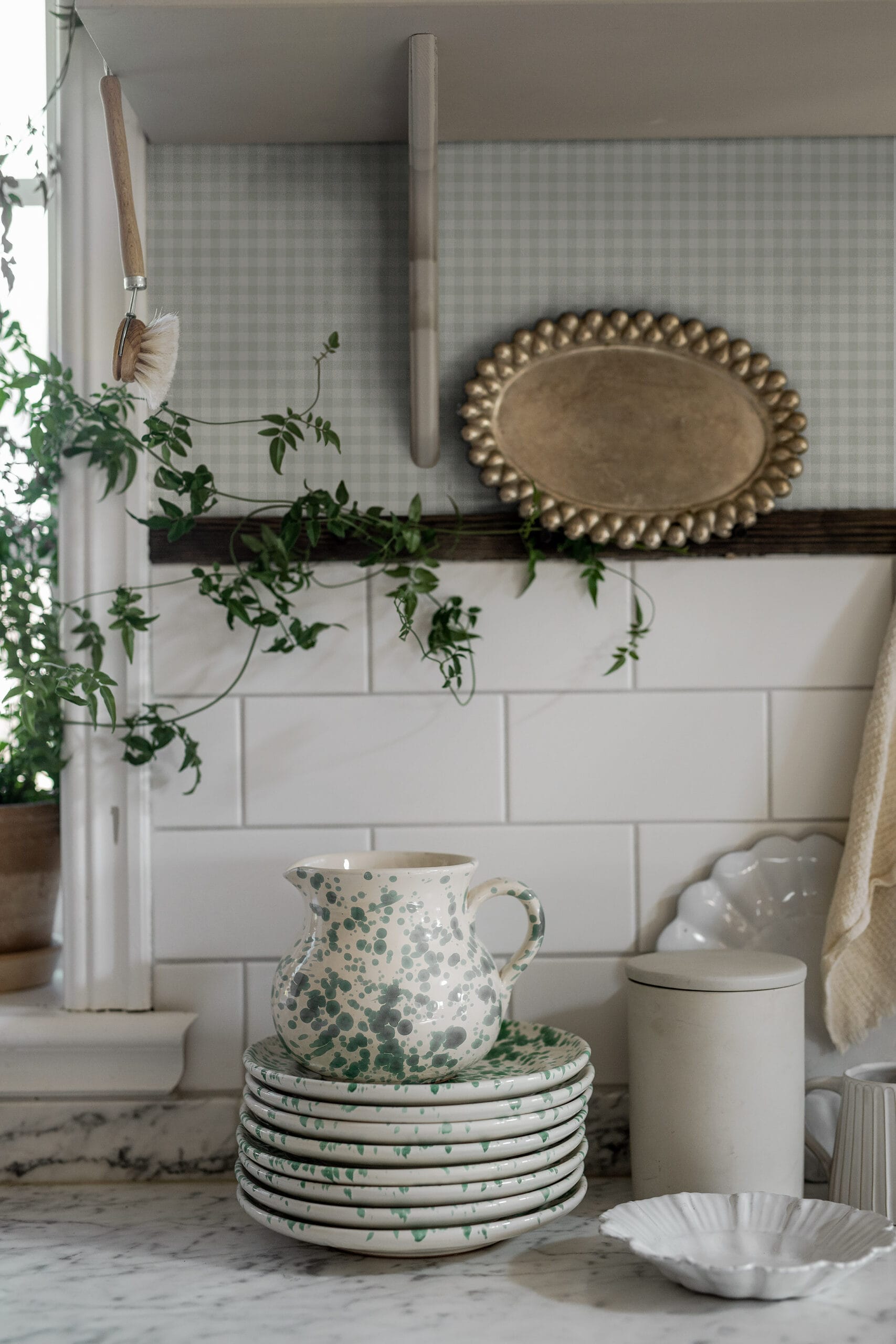 Picnic Check är en ljus, smårutig tapet i en mild, fräsch färgskala. Den lilla klassiska rutan är tryckt på vår älskade linnebotten, och den diskreta, taktila vävstrukturen ger tapeten en mjuk, ombonad karaktär som för tankarna till somriga dukar och frasande sänglinne. En tidlös tapet som ligger helt rätt i tiden!Picnic Check finns i flera pastellfärger. Här ser du tapetens rutor i lent kittvitt och en sval och behaglig nyans av ljusgrönt.