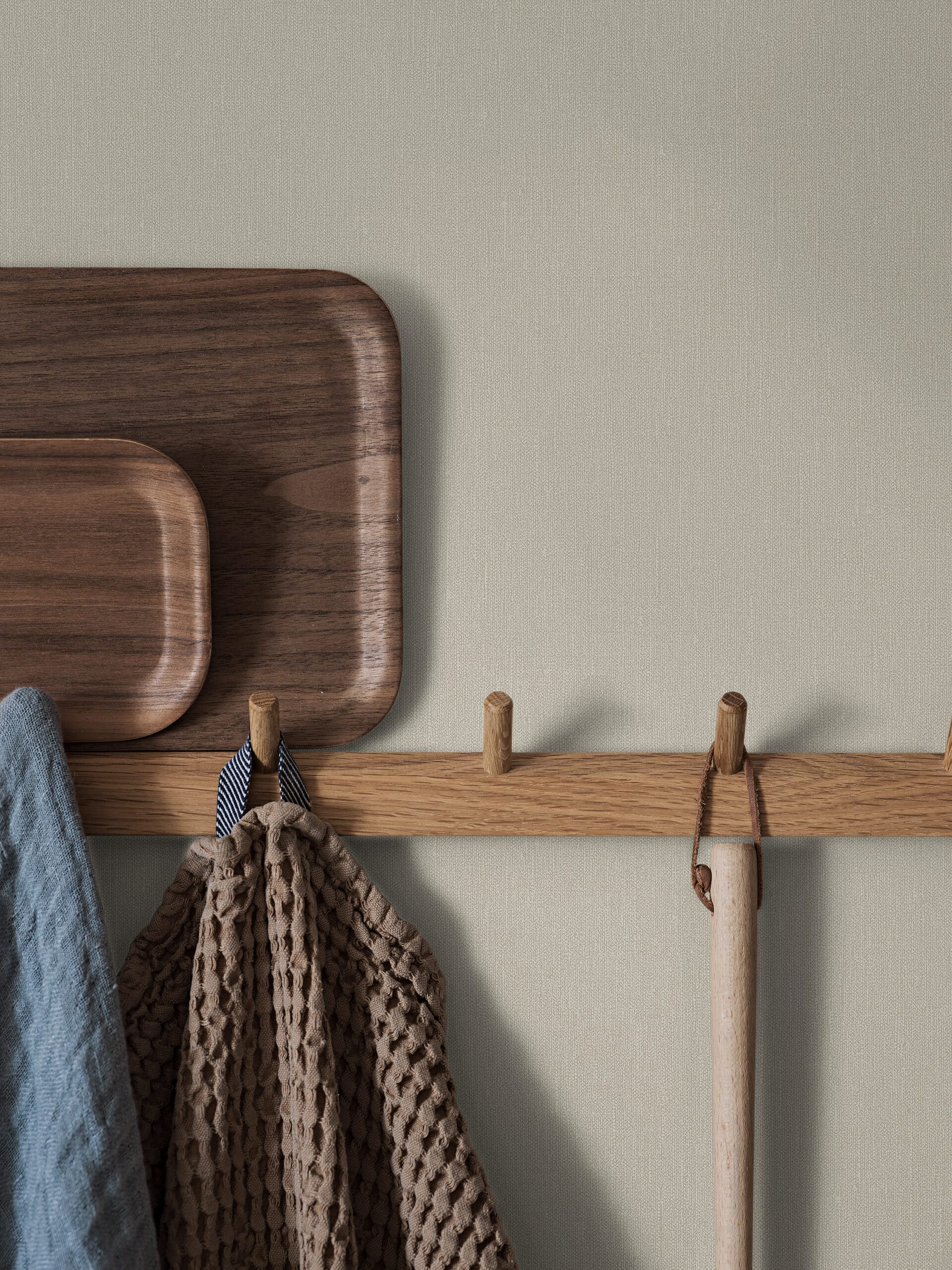 Scandinavian Beige är en enfärgad tapet med fin linnestruktur som ger rummet en klädd, ombonad känsla. Linneytan gör att väggen känns mer levande, nästan svagt skimrande när ljuset faller rätt. I kollektionen Linen finns 35 linnetapeter i ett brett spektrum av färger. Scandinavian Beige går i en ljus till mellanmörk nyans av varmt gråbeige, inspirerad av det skandinaviska ljuset. Ett bra val för en varm, enfärgad fond med karaktär.