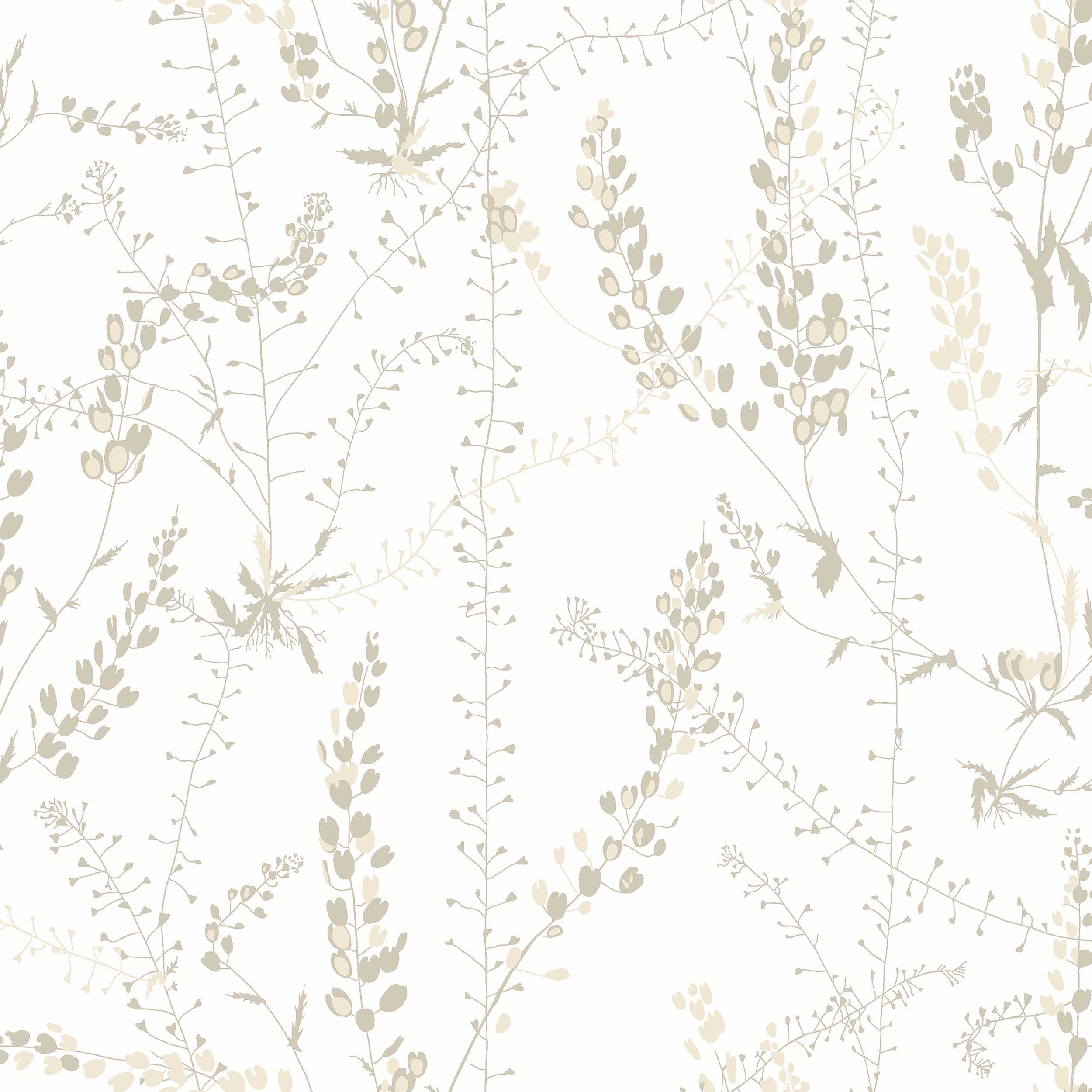 Den danske arkitekten och formgivaren Arne Jacobsen hyste en stor kärlek till de grafiska, strikta formerna men han älskade också naturen vilket syns i tapeten Bladranker. Ett sirligt, harmoniskt mönster av skira bladrankor och fröställningar som slingrar sig upp mot taket. Här ser du Arne Jacobsens tapet Bladranker i en varm ljus färgställning med gråbruna och beige rankor på varmvit botten.
