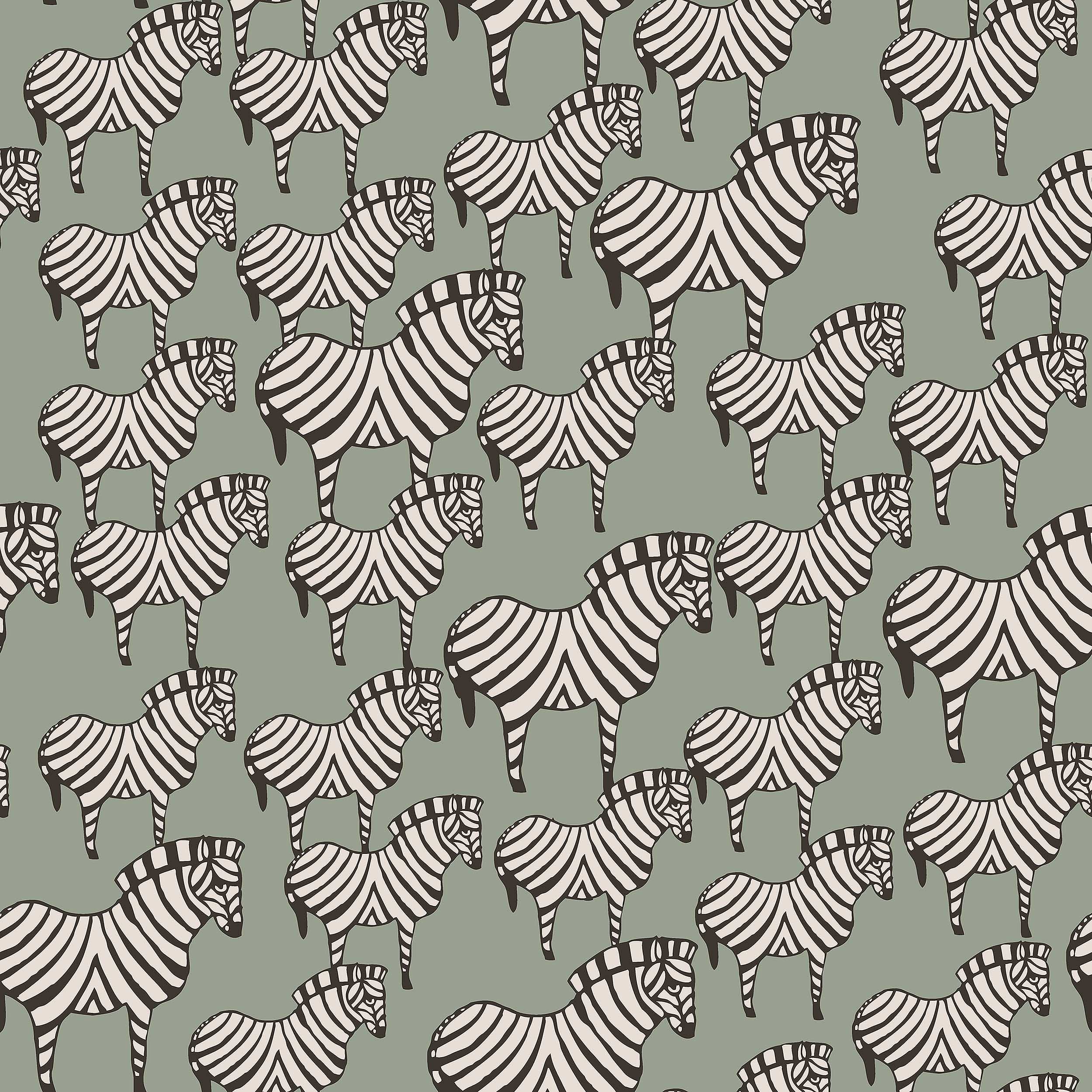 Lisa Larsons knubbiga keramikfigurer finns i många svenska hem och är eftertraktade bland samlare världen över. Många av djurskulpturerna härrör från 1950-talets andra hälft, då Lisa arbetade sina första år på Gustavsberg. Så även den tidlösa zebran, som nu får nytt liv som tapet! Här går Lisa Larsons grafiska tapet Zebra i en varm grågrön ton som kontrasterar mjukt mot de svartvita zebrorna.